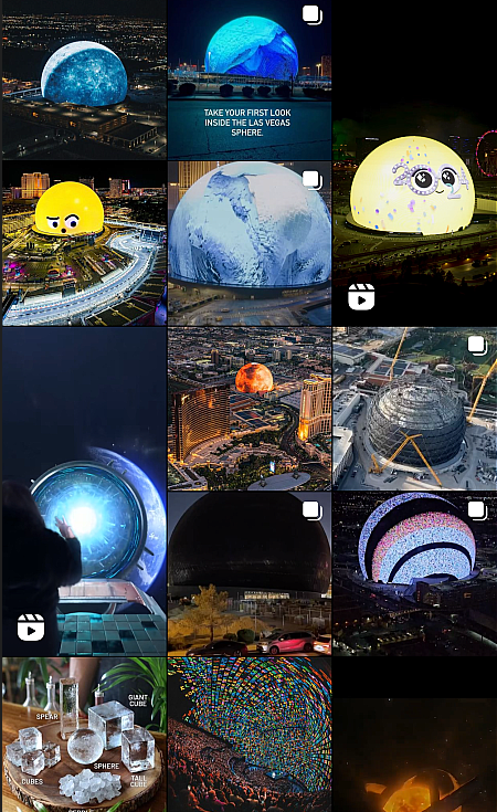 스피어는 그 자체로 예술 작품입니다. 16만7000개의 스피커와 축구장 두 개 크기의 초고화질 스크린을 통해 관객들에게 시각적, 청각적 압도감을 선사합니다. 여기에 냄새와 미세한 진동까지 더해져, 관객들은 아무런 장비 없이도 인간이 동시에 감각할 수 있는 모든 자극을 경험하게 됩니다. 인스타그램을 통해 스피어의 실시간 사진들을 조금 더 찾아보았습니다. 외부에서 보는 스피어의 모습에도 한참 눈길이 갑니다.